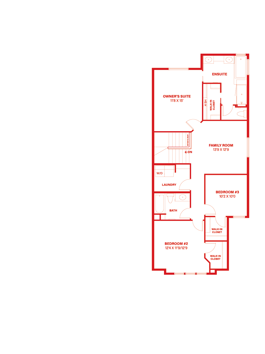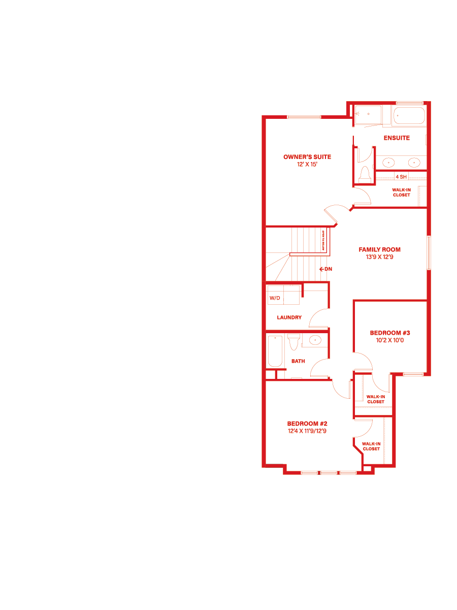 Rear owner’s suite with three piece ensuite and walk-in closet