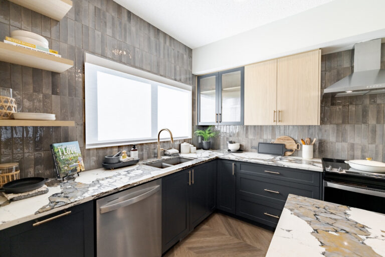• Designer full-height kitchen backsplash